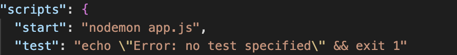 그리고 package.json파일에 가서 'script'의 'start'의 명령어를 "nodemon (실행서버파일이름)"으로 변경(or 추가)해주면, 'npm start'명령어 사용시 자동으로 서버 파일 실행됨.