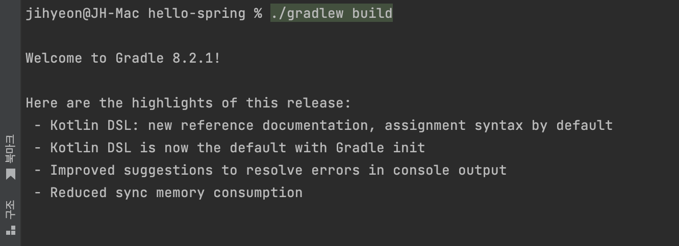 ./gradlew build -> cd build/libs -> java -jar hello-spring-0.0.1-SNAPSHOT.jar